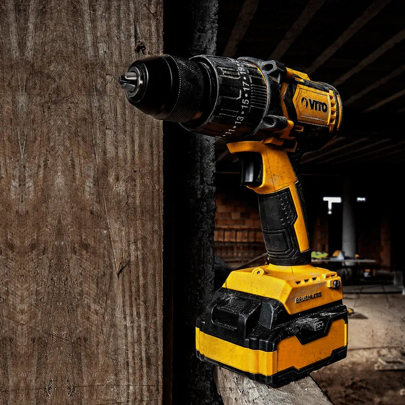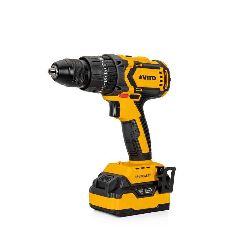 O berbequim sem fios de 20V com tecnologia Brushless (motor sem escovas) apresenta uma maior resistência oferecendo mais desempenho e fiabilidade.