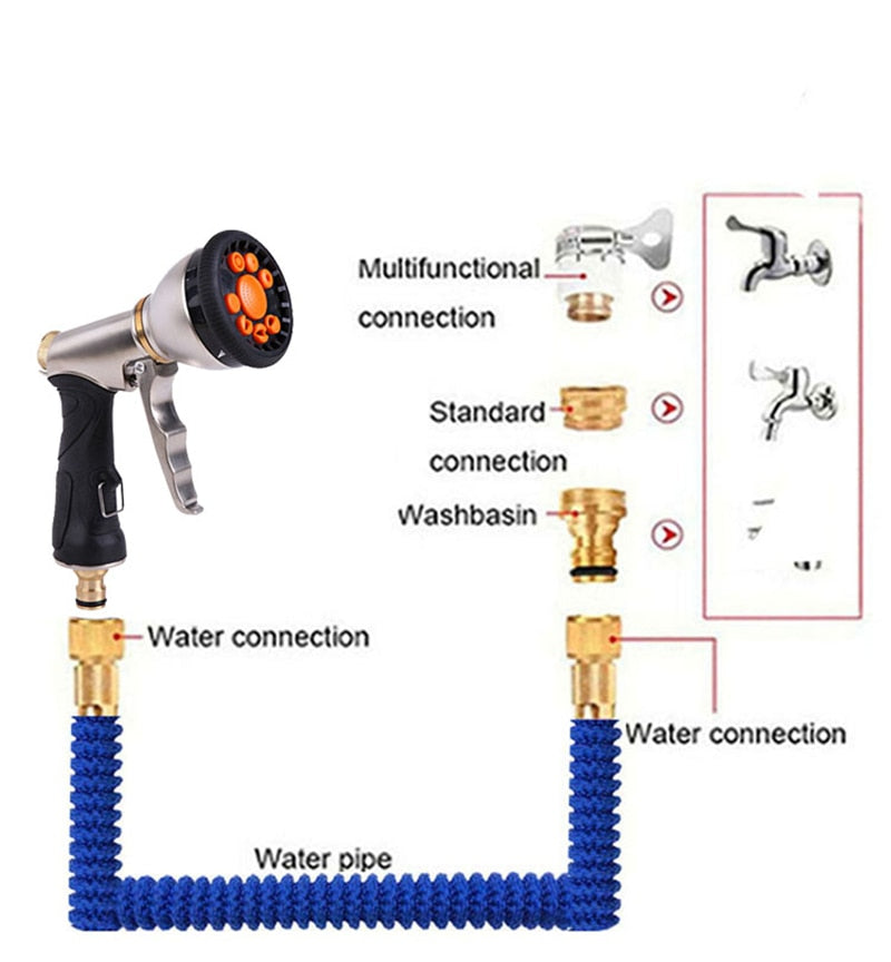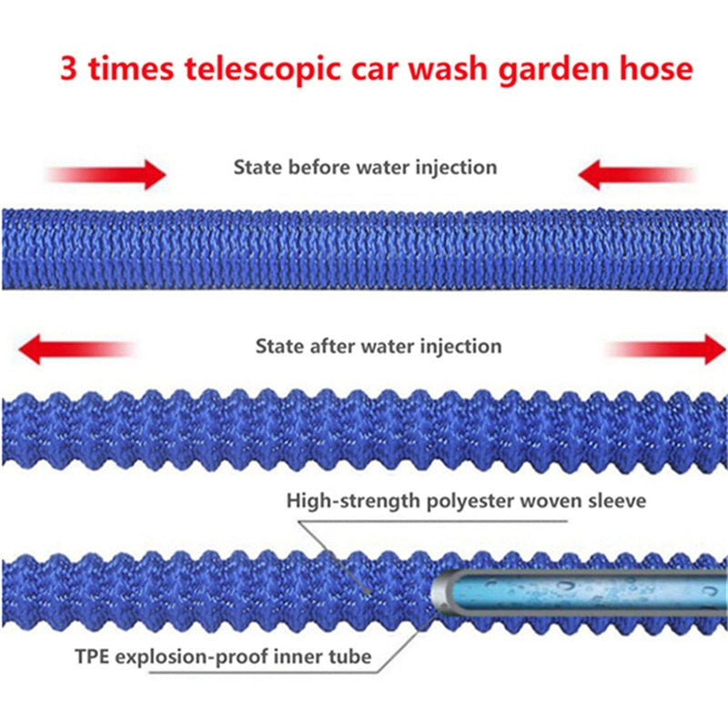Mangueira mágica de jardim de 25 pés a 100 pés Mangueira telescópica flexível de plástico Mangueira de lavagem de carro Pistola de spray de metal Rega de jardim ao ar livre