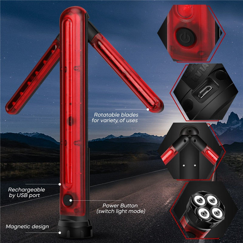 Lâmpadas LED de emergência Seta de segurança dobrável Barra de Luz Suporte Magnético Sinal de Aviso Lâmpadas SOS Lanterna USB