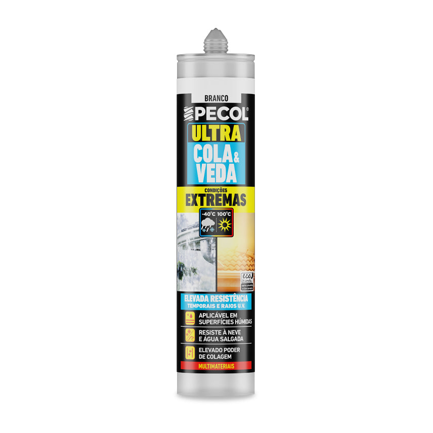 O Ultra Cola e Veda Condições Extremas é a solução indicada para colar e vedar substratos que estejam expostos às mais adversas condições atmosféricas, tais como raios U.V., chuva intensa e neve.