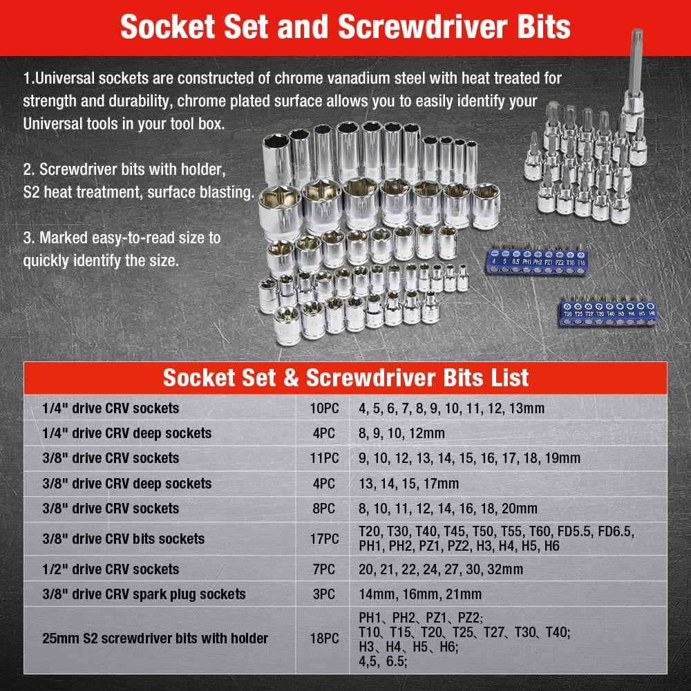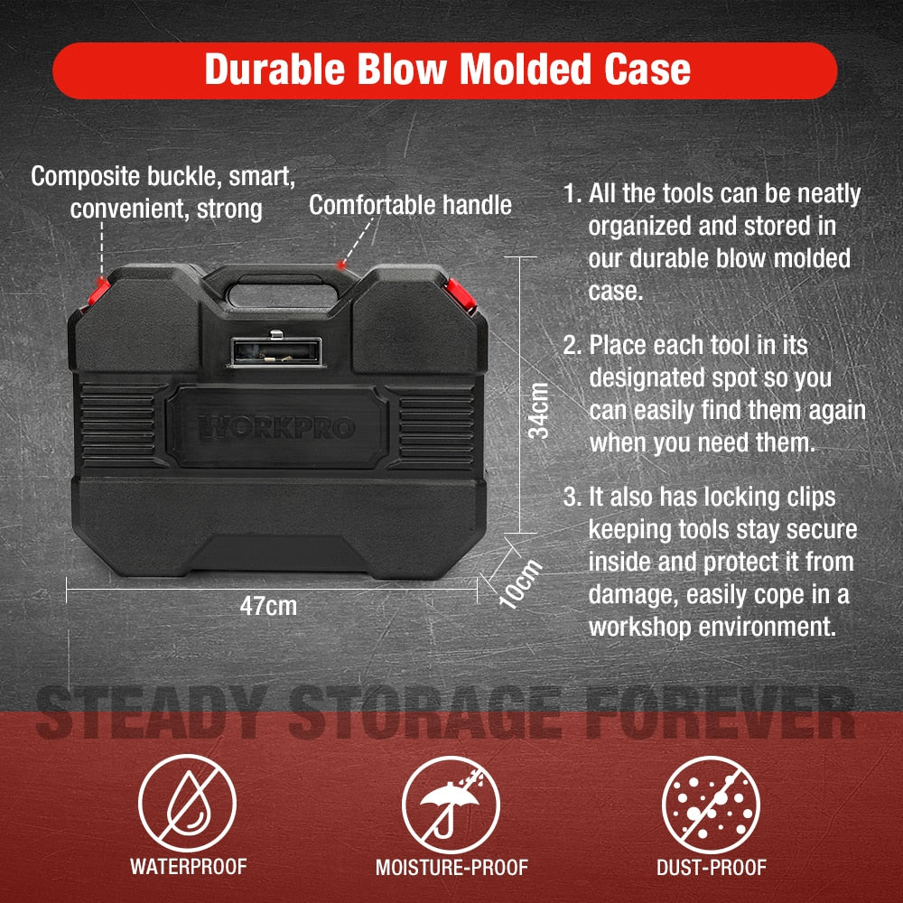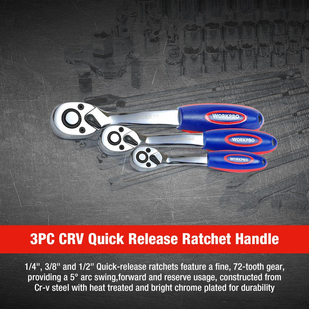 Conjunto de ferramentas WORKPRO ferramentas manuais para reparo tipo catraca com chave inglesa e conjunto de soquetes